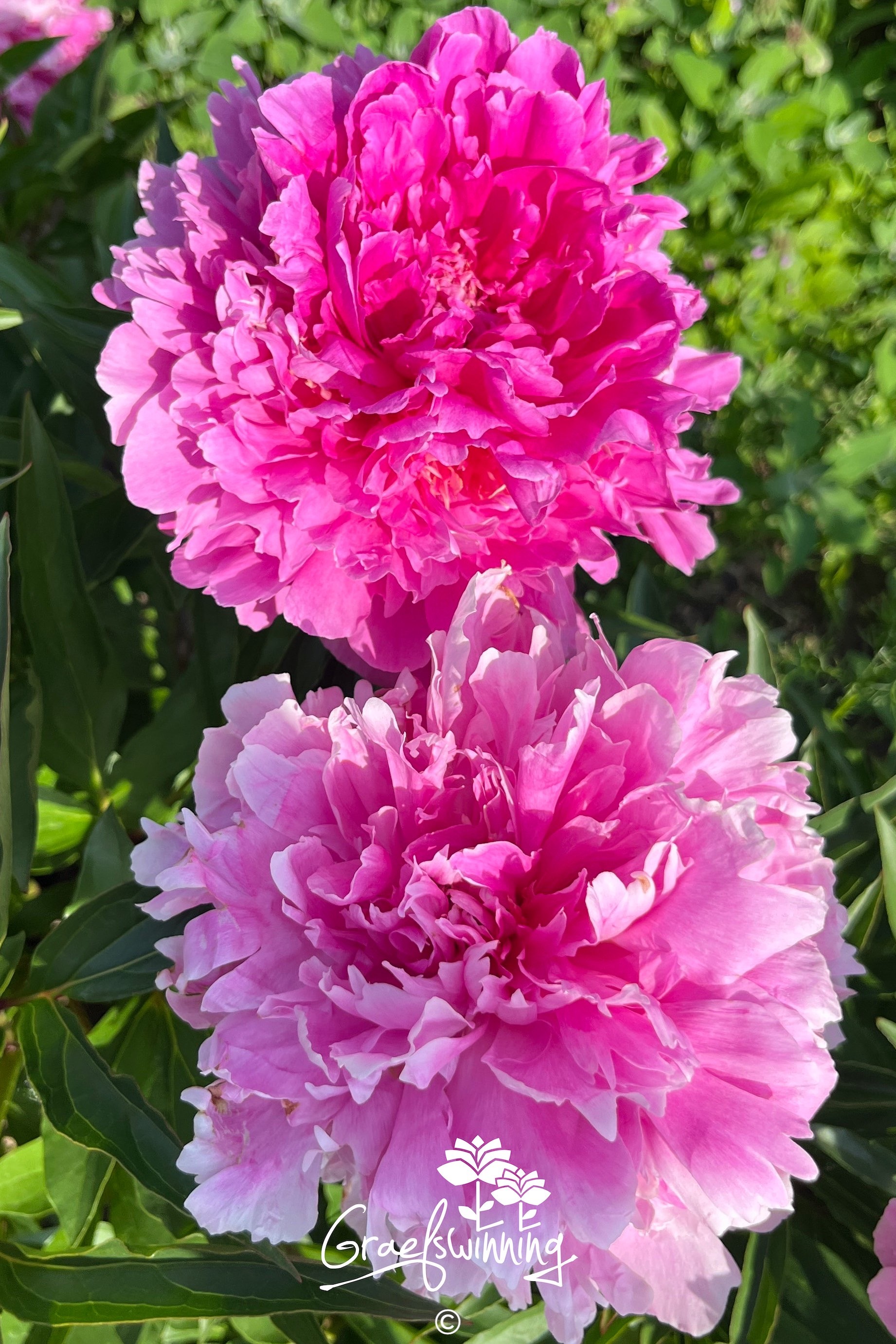Paeonia lactiflora “Fragrant Pink Imp”. This is an attractive variety for smaller gardens or flowerbeds. The vivid pink colour and double twirly blossoms make it stand out among its peers. Unlike its classic cousins, this double peony does not require any support, and it also makes a very nice cut flower.